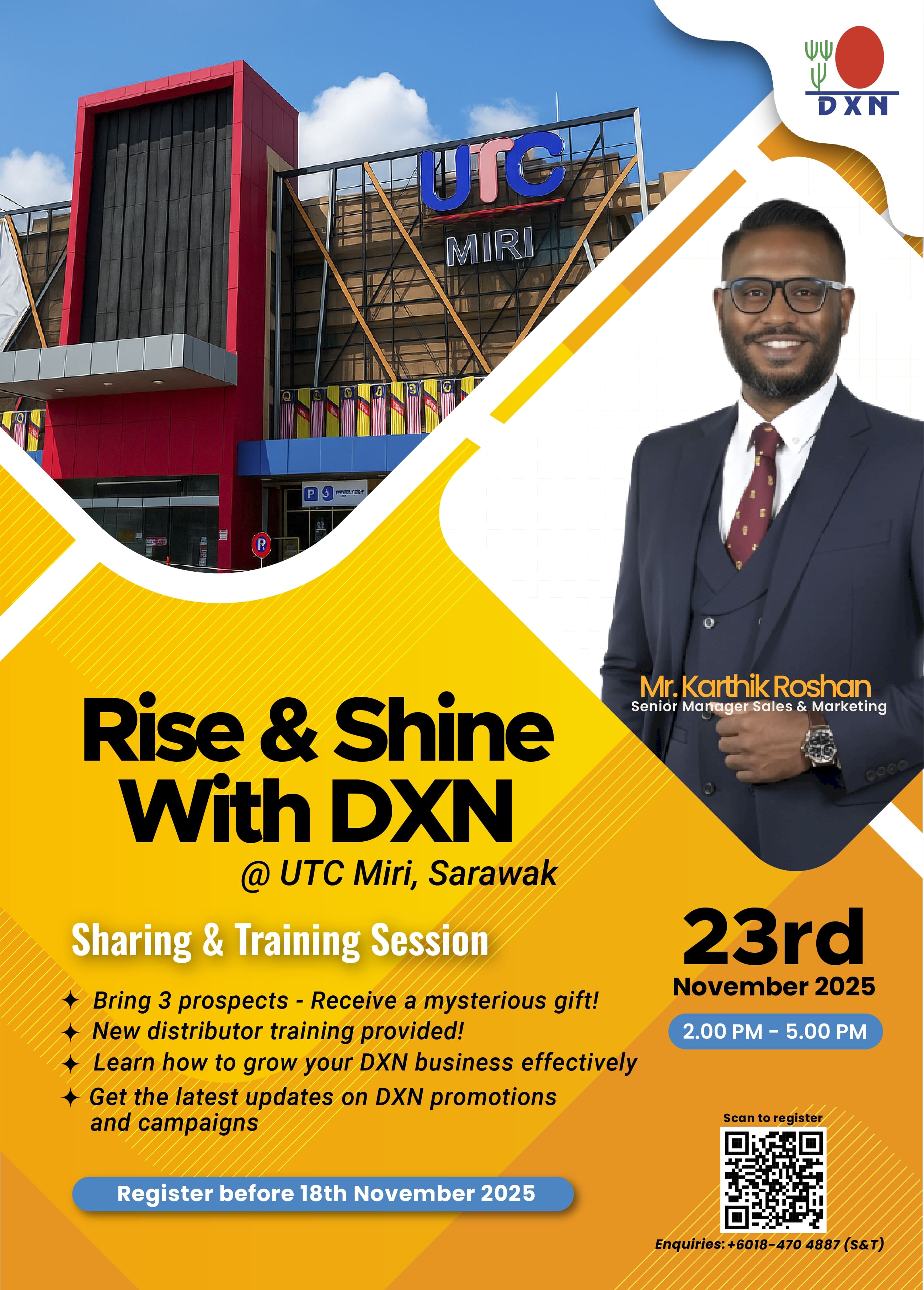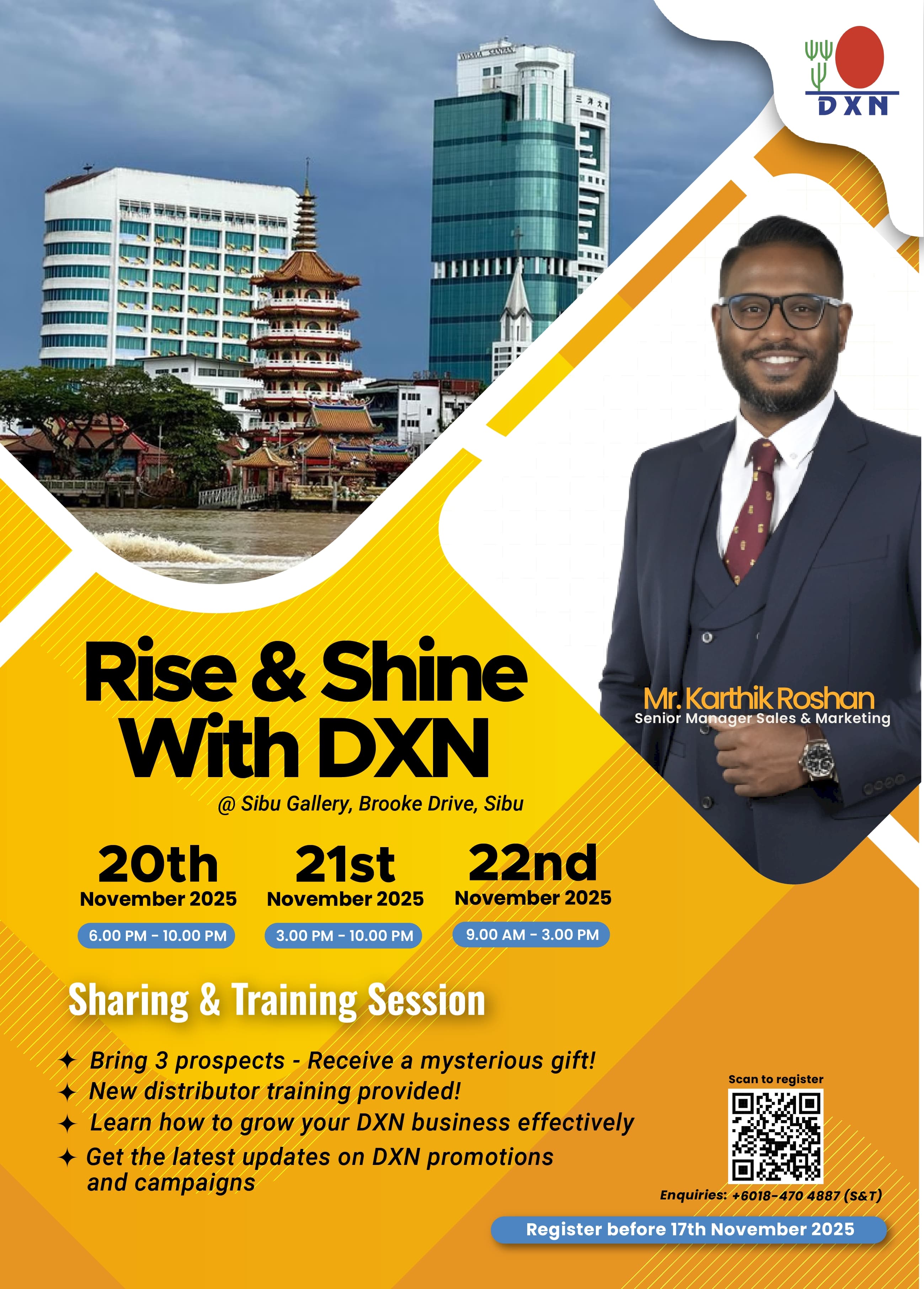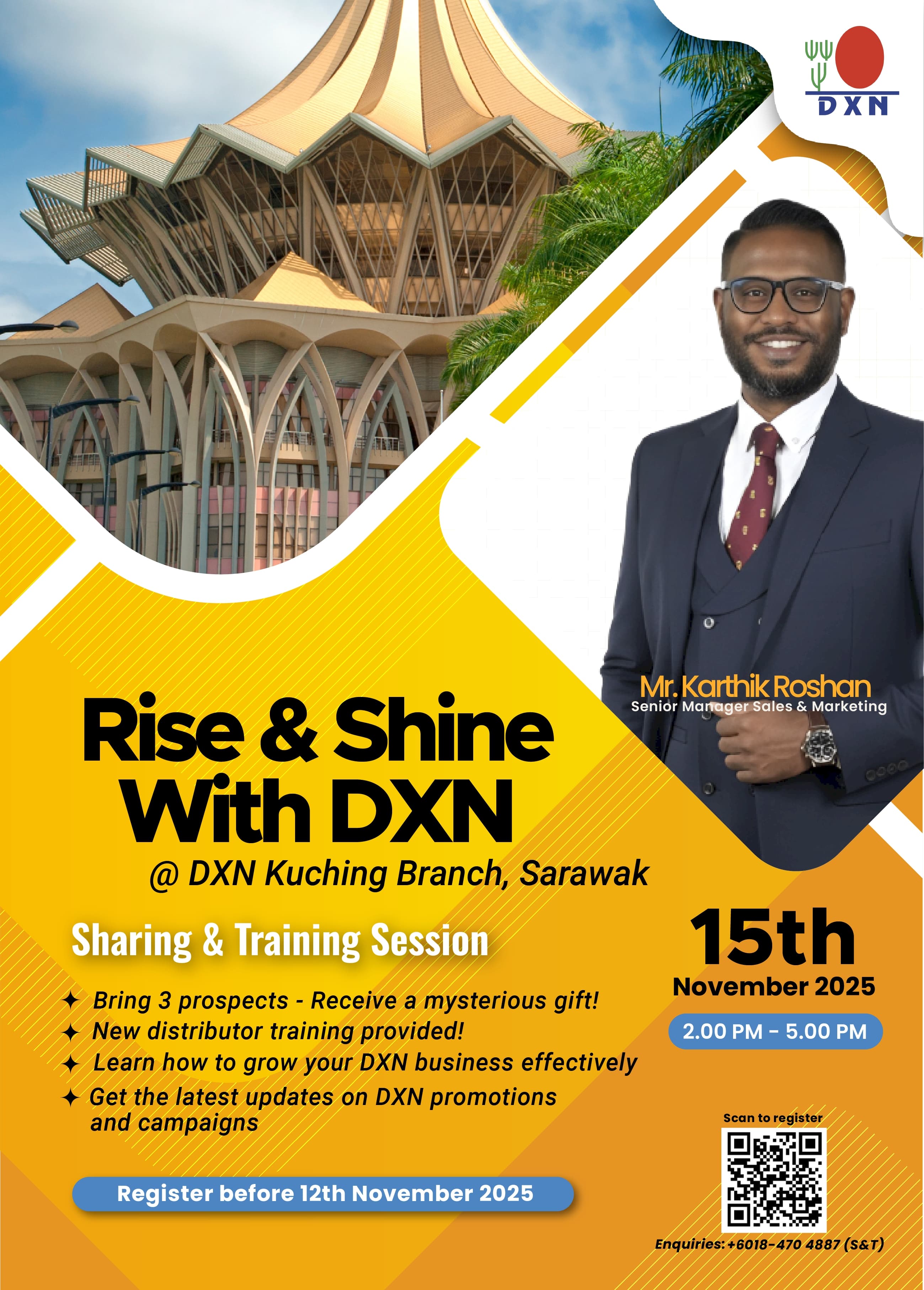Join our Sharing & Training Session – “Rise & Shine with DXN”, happening this November 2025 at: