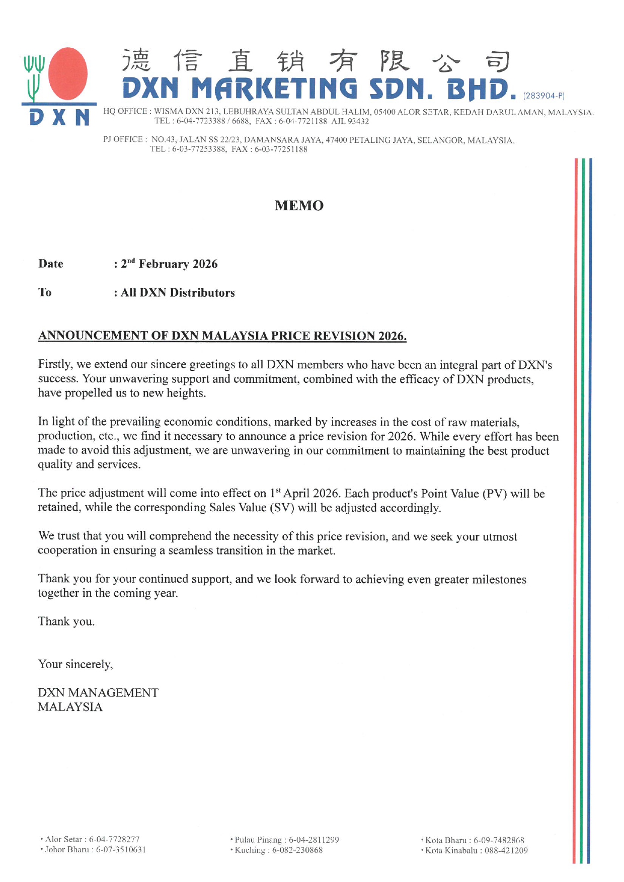 We wish to bring to your attention the announcement of DXN Malaysia price revision 2026, which will take effect on 1 April 2026.