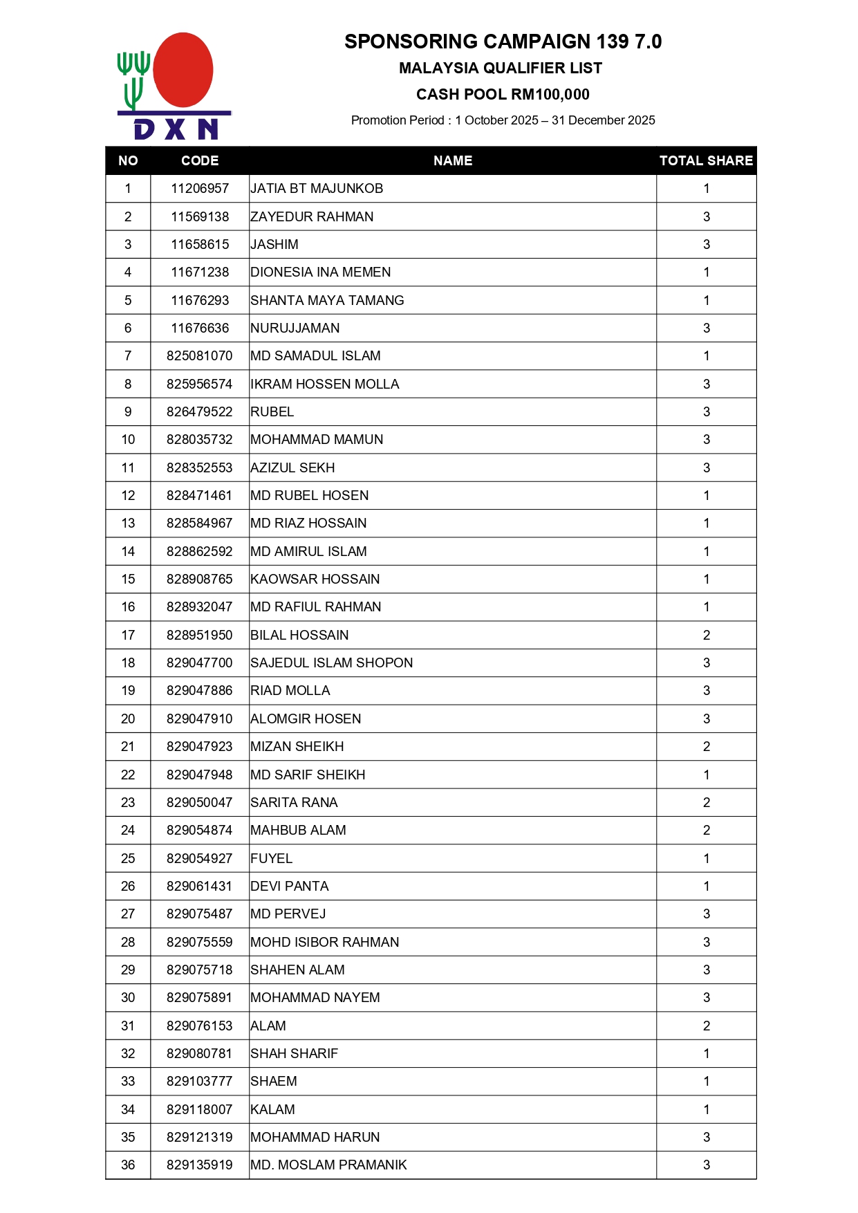 Congratulations to all the qualifiers of the Sponsoring Campaign 139 7.0 (1 October 2025 - 31 December 2025)!